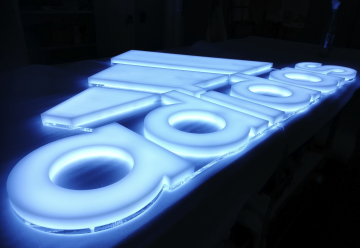 Je to pro nás jeden z TOP produktů, kde jsem přesvědčen, že jsme tuto technologii dotáhli ke spokojenosti nás jako výrobců, tak především klientů. Světlovodný materiál je v podstatě opět laicky řečeno kus (blok) plexi, který má vlastnost spolehlivě distribuovat světlo. Prosím znalé o schovívavost, nebudu uvádět přesné parametry a typy materiálu, ale jen nastíním, co se dá opravdu vyrobit, jelikož spousta lidí netuší, co vůbec lze. Z odborného hlediska bych musel věnovat spoustu času a vysvětlovat, že distribuce světla není jen o vhodném umístění led zdrojů, ale musíme pracovat jak s odrazem tak s blokováním prostupu, především pro dosažení jednolitosti prosvícení. A to je právě ono, LED svití bodově a našim úkolem je dosáhnout jednolitosti a co nejlepší distribuce světla tak, aby v každém místě svítilo vše stejně i při rozličnosti tvaru a šířky tahu třeba u fontů.