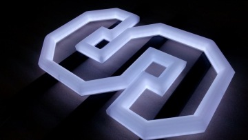 COMAGRAV NOTUS PLUS je 3D CNC frézovací a řezací stroj s pracovní plochou 2100 × 4200 mm, naprosto nezbytný pomocník a plně vytížený stroj. Řeže, formátuje, gravíruje, frézuje – jde přes něj 90% našich zakázek. Písmena pro světelné reklamy, kazety, tabule k polepení, tabule k potisku, vyrábíme si díky němu i vlastní spojovací materiál.