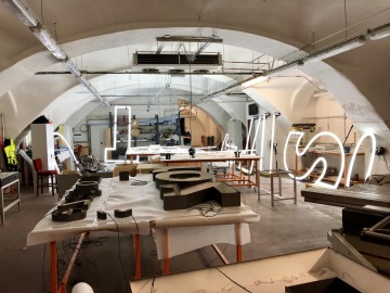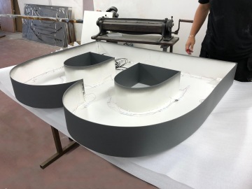 Vznikají zde všechny nosné konstrukce pod světelné nápisy, korpusy 3D písmen z Al nebo nerez plechů, které se nejčastěji používají s podsvícením LED a svítí odrazem na fasádu.