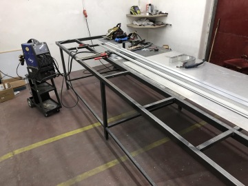 K tomu samozřejmě patří i plně vybavená zámečnická dílna, včetně 2 pásových pil, 2 ohýbaček, falcovačky a velkoformátové pily na zpracování libovolných deskových materiálů o rozměrech 3000 × 2000 mm.
