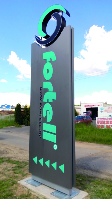 Vyrábíme i pylony k čerpacím stanicím. Základem je nosná konstrukce, která je následně opláštěna kompozitním materiálem. Číselníky jsou LED displeje, dálkově ovládané přes wi-fi. Můžete si takto pohodlně z kanceláře aktualizovat zobrazované informace. To celé jsme schopni dodat „na klíč“ od grafiky až po usazení na místě. Pylony lze využít také k označení sídla společnosti, mohou být osazeny svítícím, různě tvarovaným logem, opatřeny navigačním plánkem, nebo popiskem.